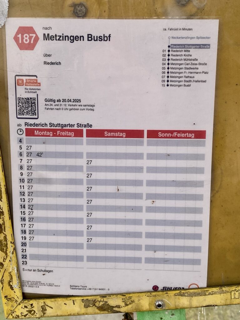 Fahrplan Mittelstadt – Riederich – Metzingen – Neugreuth (PDF).